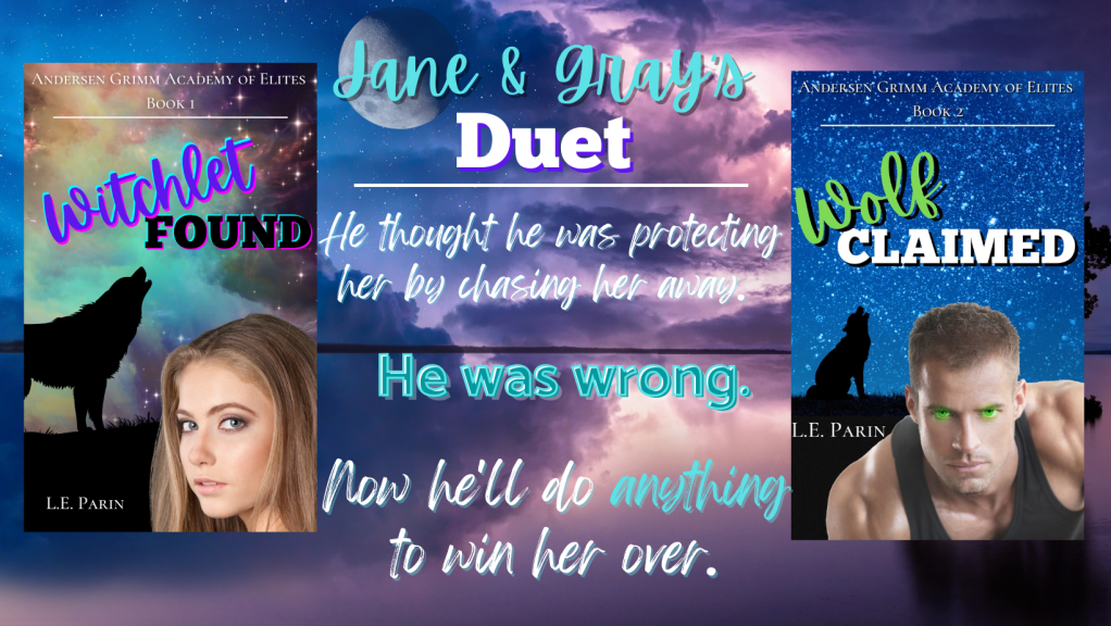 Jane and Gray’s duet are the first two books in the series. Look forward to Liz and Ryken’s story in hopefully 2024, followed by a novella with Blue and a new character you’ll meet in Wolf Claimed. Oh, and Rage? Yeah, you may see him in his own spinoff novel…