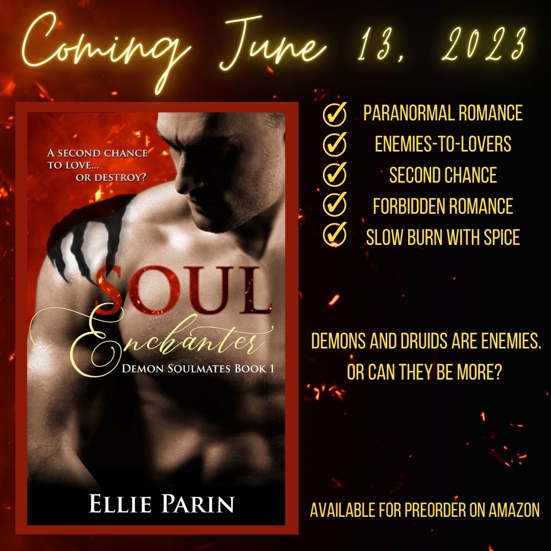 I’m so excited to announce that I officially have the preorder for Soul Enchanter up on Amazon! You can find it at http://www.amazon.com/dp/B0C6146NQH Get ready for some slow burn paranormal romance with spice! You’ll find enemies-to-lovers, second chance, and forbidden romance themes.