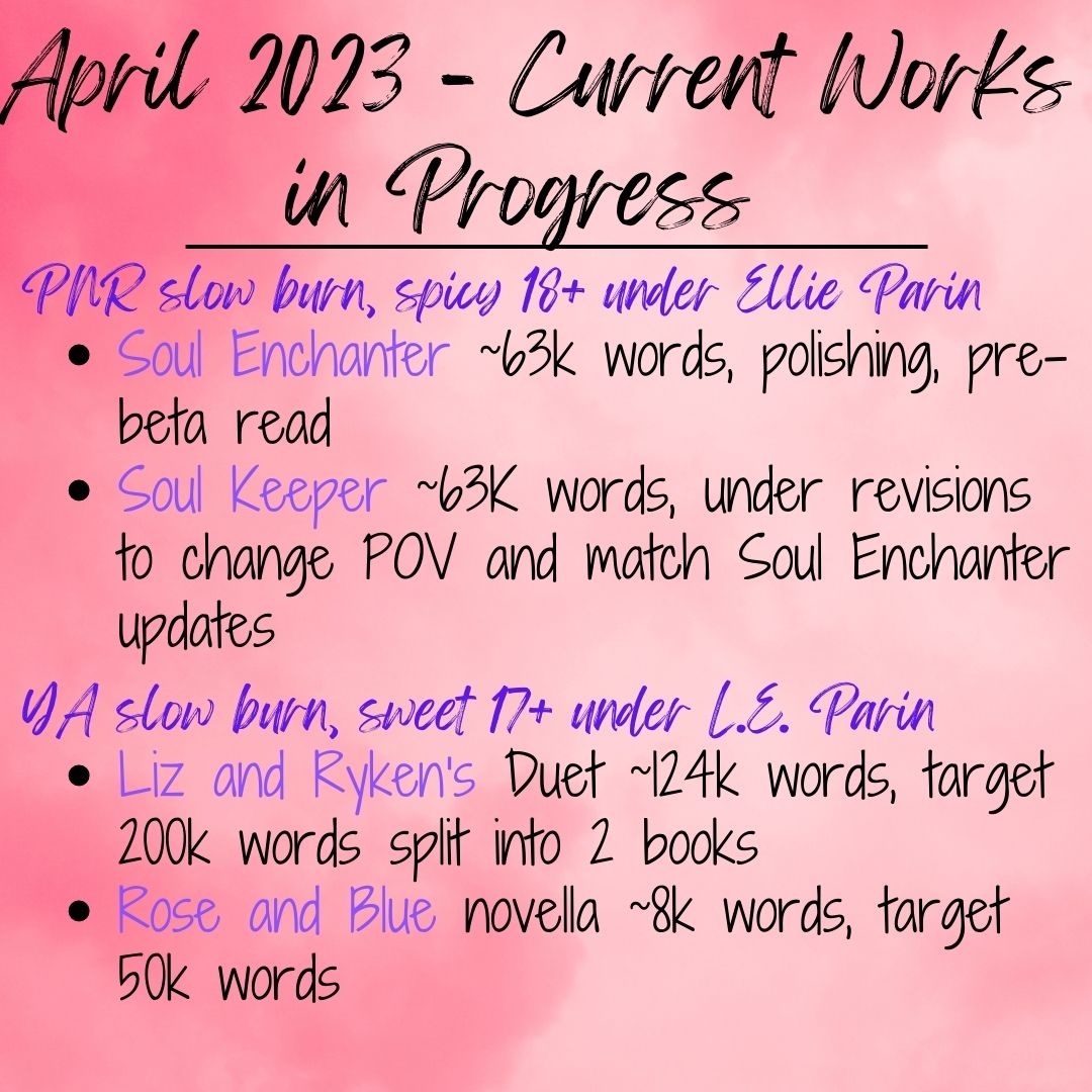 So, that’s my short update for April 2023 with the hope that I’ll pop in with teasers for Soul Enchanter! Here’s to a happy May!